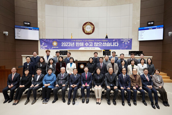 [용인=오왕석 기자] 용인특례시의회(의장 윤원균)는 22일 본회의장에서 2023년 폐회식을 열고 의사일정을 마무리했다.