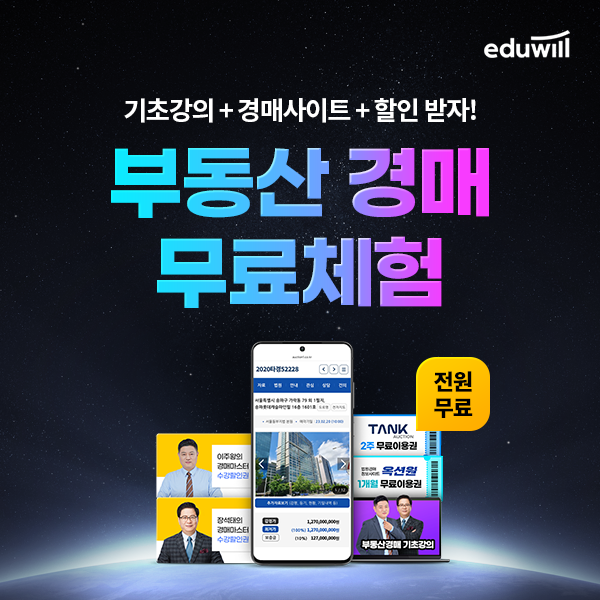 여기에 더해 해당 이벤트 신청자에게는 에듀윌 부동산아카데미 인기 경매강의 수강 할인의 혜택이 지원된다.
