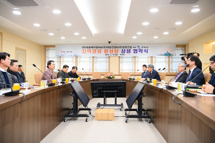 [구미=박병상 기자] 경북 구미시가 지난 16일 국제통상협력실에서 (주)대광에이엠씨, (주)대광건영, (주)성한건설과 지역건설업체 공사 참여 확대를 위한 협약을 체결했다.