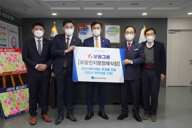 보람상조 최철홍 회장은 “앞으로 내 부모, 내 형제처럼 정성을 다한다는 한결같은 마음으로 천안시 취약계층을 위한 다양한 사회공헌활동을 지속적으로 확대해 가겠다”며, “천안시와의 정기적 후원 외 천지향장례식장을 활용한 적극적인 지원도 아끼지 않겠다”고 말했다.