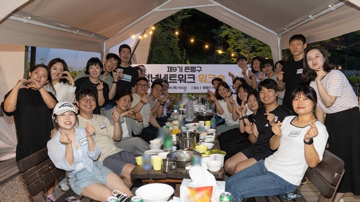 은평구가 최근 앵봉산 가족캠핑장에서 제9기 은평 청년네트워크 워크숍을 개최했다. 사진은 워크숍 참가자들이 기념촬영을 하고 있는 모습. (사진=은평구청 제공)