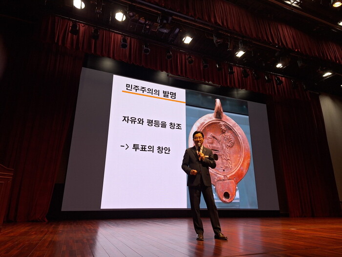 한편 지난 26일 일곱번째 강연에서는 박경귀 시장이 “아리스토텔레스의 ‘국가의 존속 조건’으로, 공동체의 안정을 위해 시민이 탁월해야 한다”며 “우리가 꿈꾸는 세상은 자유롭고 평등한 사회로, 자유는 평등의 어머니”라고 강조했다.