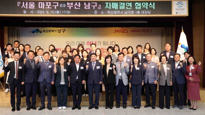 [시민일보 = 홍덕표 기자] 마포구(구청장 박강수)가 최근 부산 남구청에서 '마포구-부산 남구 자매결연 협약식'을 열고 상호협력 및 상생발전을 위한 자매결연을 맺었다.