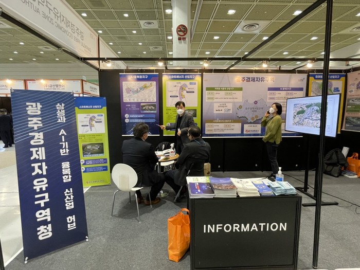 광주경자청은 이번 전시회에 홍보부스를 운영하고 ▲광주경제자유구역 혁신생태계 환경 ▲스마트에너지산업지구Ⅰ·Ⅱ(광주 에너지밸리 일반산단, 남구 도시첨단산단) 분양 홍보 ▲인공지능과 연계한 에너지전환 및 신산업 육성 방안 홍보 등 투자유치 활동을 하고 있다.