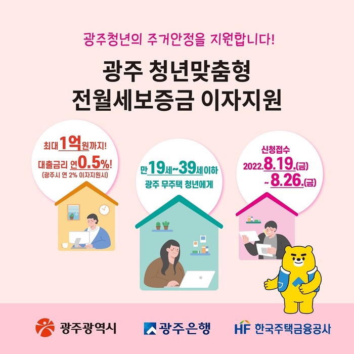 [광주=정찬남 기자] 광주광역시는 무주택 청년의 주거비 부담을 덜어주기 위해 ‘2022년 하반기 청년 전월세보증금 대출이자 지원사업’ 참여자 120명을 모집한다.