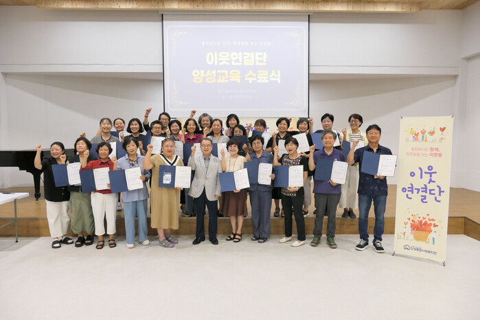 『이웃연결단』은 이웃의 안부를 확인하고 정서적 지지를 제공하며, 일상생활에 필요한 복지 서비스와 지역 자원을 안내해 안전하고 따뜻한 마을공동체를 만들고자 하는 주민 참여형 이웃 돌봄 봉사단체이다. 이번 교육을 수료한 『이웃연결단』은 9월부터 12월까지 역량 강화를 위한 보수교육, 외부 기관 우수 마을활동가 벤치마킹 워크숍, 간담회 등을 통해 이웃 돌봄 현장 실습 과정을 이어간다. 올 하반기에는 양성교육과 실습 과정을 마무리하고, 2026년부터는 도움이 필요한 이웃을 찾아가 안부를 확인하고, 말벗이 되어주며 필요한 정보를 제공하는 등 생활 속 돌봄을 실천할 예정이다.