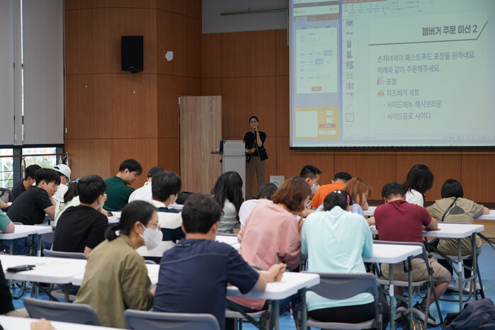 | ▲ 한국무라타전자 임직원과 함께하는 디지털 역량 강화 교육 진행 모습. |