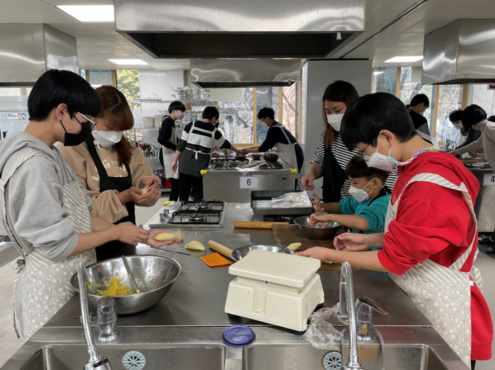 경기 오산시 꿈빛나래청소년문화의집 방과후아카데미 청소년들은 연말을 맞아 지난 18일 세마농장 텃밭에서 직접 키워 수확한 고구마를 이용해 가족과 함께 고구마빵을 만들었다. 이날 참여자들은 고구마 빵을 인근 청소년보호시설인 청소년 쉼터에 전달했다. 사진은 참여 학생들이 고구마빵을 만들고 있는 모습. (사진제공=오산시청)
