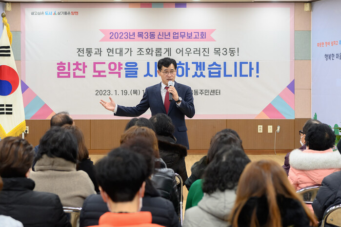 이기재 구청장은 “이번 동 신년 업무보고회는 갑진년 새해 양천구의 비전과 주요 사업계획을 구민 여러분께 공유하며 소통하는 자리”라면서 “지역 발전을 위한 소중한 고견을 적극 구정에 반영해 구민의 기대가 현실이 되는 살기좋은 양천구를 만들어 가겠다”고 말했다.