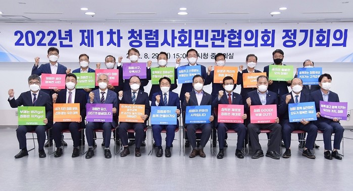 광주광역시는 29일 시청 중회의실에서 2022년 제1차 청렴사회민관협의회 정기회의를 개최해 부패 없는 청렴한 광주공동체를 만들어 가기 위한 기관별 청렴 실천과제를 선정하고 실천 의지를 다짐하는 공동 협약을 체결했다.