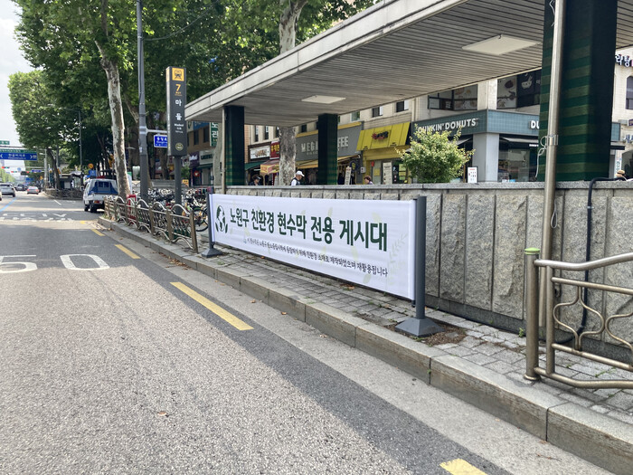 [시민일보 = 박소진 기자] 노원구(구청장 오승록)가 환경부 인증 ‘친환경 현수막’을 도입하며 동시에 서울시 자치구 최초로 ‘친환경 현수막 전용게시대’를 운영한다고 18일 밝혔다.