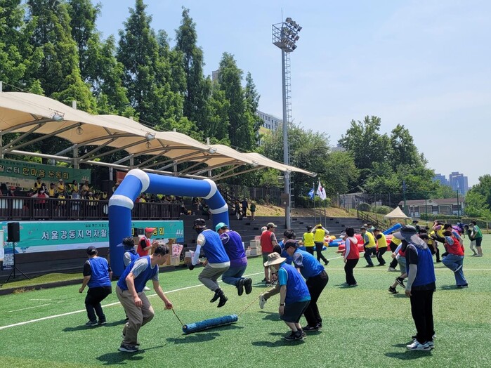 이날 행사에는 사업단 참여자 140여 명과 서울강동지역자활센터 종사자 12명 등 총 150여 명이 4개 팀을 구성해 대항전 형식으로 경기를 치렀다. 타이어 과녁 신발 던지기, 포니홉 레이싱, 릴레이 줄넘기 등 6개 종목의 프로그램이 진행된 가운데, 자활센터 종사자와 자활근로사업단 참여자 간 협업을 통한 명장면이 곳곳에서 연출되며 응원석에서 박수가 쏟아지기도 했다.