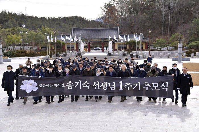 추모식은 민주화운동기념사업회·광주전남민주화운동동지회, 광주전남작가회의, 송기숙선생기념사업회 준비위원회 등이 주최했으며 추모행진을 시작으로 강기정 광주광역시장과 민주원로 등의 추모사, 고(故) 송기숙 선생의 육성 청취 순으로 진행 됐다.