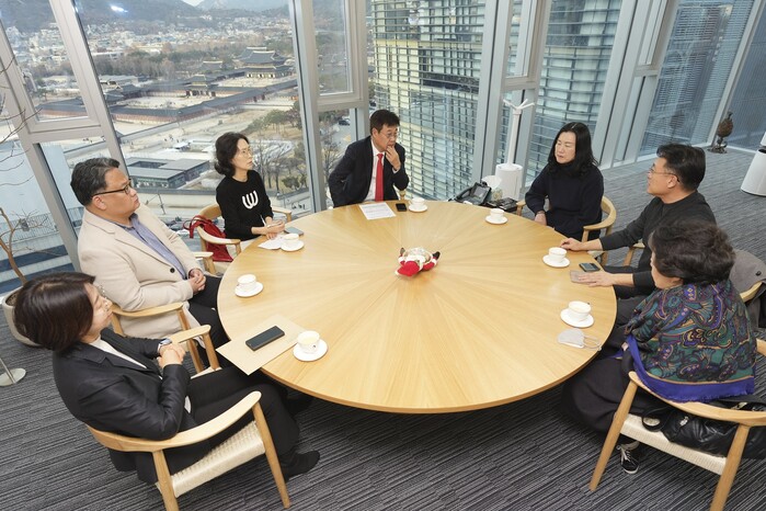 | ▲ 지난 12일 구청장실에서 열린 덕성여중·배화여중·서울사대부설여중·중앙중 및 재동초 교장단 간담회 진행 모습. (사진=종로구청 제공) |