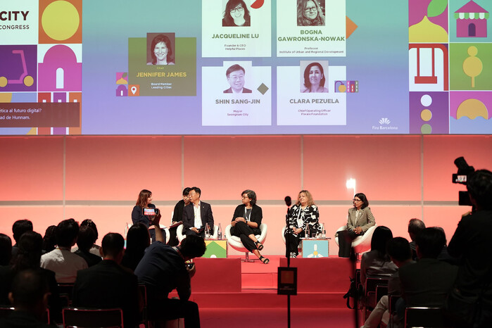 | ▲ 스마트도시과-신상진 성남시장이 5일(현지 시간) 스페인 바르셀로나에서 열린 ‘2024 스페인 스마트시티 엑스포 월드 콩그레스" |