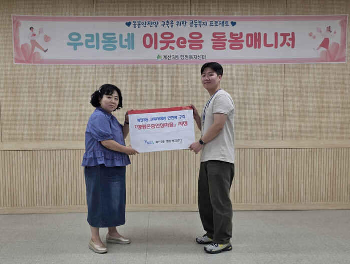 ‘생명존중 안심마을’ 사업은 지역의 인적·물적 자원을 연계해 주민 스스로 생명 존중 문화를 실천하고 안전한 마을 환경을 조성하는 사업이다. 이날 협약식에서 정신건강복지센터는 계산3동에 지정서와 현판을 전달했다.