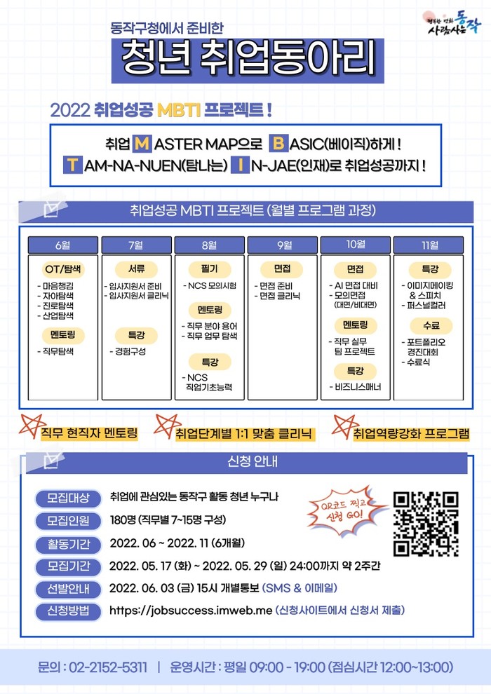 [시민일보 = 여영준 기자] 서울 동작구는 구에서 거주 또는 활동하는 대학생 및 구직청년을 대상으로 오는 29일까지 취업동아리 참여자를 신규 모집한다고 밝혔다.
