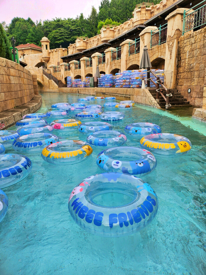 | ▲ 캐리비안 베이에 비치된 ‘위비프렌즈 튜브’ 모습. (사진=우리은행 제공) |