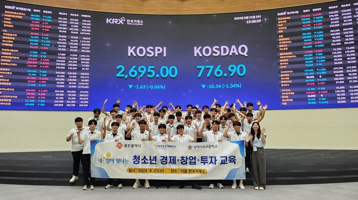 광주광역시(시장 강기정)는 21일 서울 한국거래소 전시관 등에서 광주살레시오고 2학년 학생 40명이 참석한 가운데 ‘청소년 경제·창업·투자 교육’을 열고 전문가 특강과 현장체험 프로그램을 진행했다.