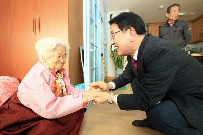 31일 문헌일 구로구청장과 직원들은 신도림동에 거주하는 103세 어르신 댁을 방문해 새해 인사를 드리고 어르신의 건강과 행복을 기원했다.