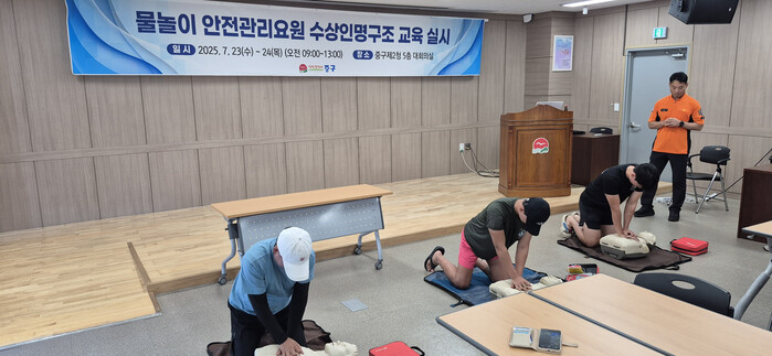 [인천=문찬식 기자] 인천 중구(구청장 김정헌)는 본격적인 여름 휴가철을 앞두고 지난 23~24일 양일간 제2청사 대회의실에서 해수욕장 안전관리 요원 22여 명을 대상으로 ‘특별 교육’을 진행했다고 밝혔다.