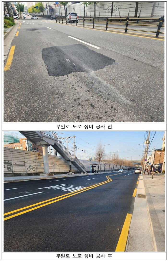 | ▲ 부일로 도로 정비 공사 전후 모습. (사진=구로구청 제공) |