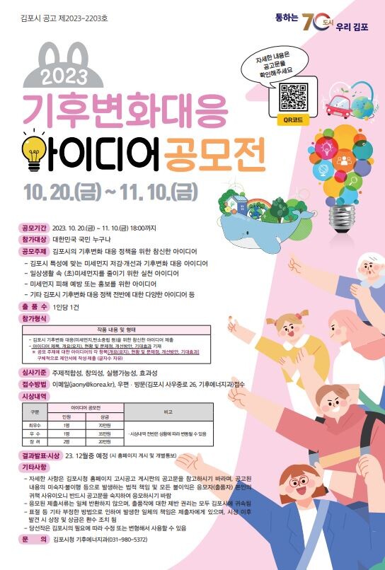 [김포=문찬식 기자] 경기 김포시가 범지구적인 문제인 기후변화 대응과 관련한 ‘2023년 기후변화대응 아이디어 공모전’을 개최한다.