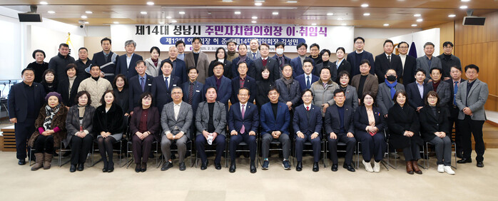 [성남=오왕석 기자] 이덕수 의장을 비롯한 성남시의회 의원들이 3일 성남시청 3층 한누리실에서 개최된 제14대 성남시 주민자치협의회장 이취임식에 참석했다.
