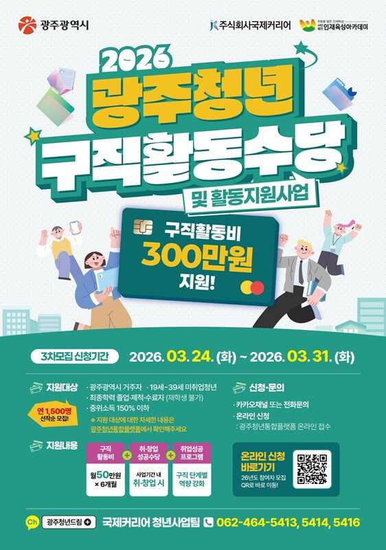 | ▲ 2026 광주청년구직활동수당 3차모집 포스터 / 광주광역시 제공 |