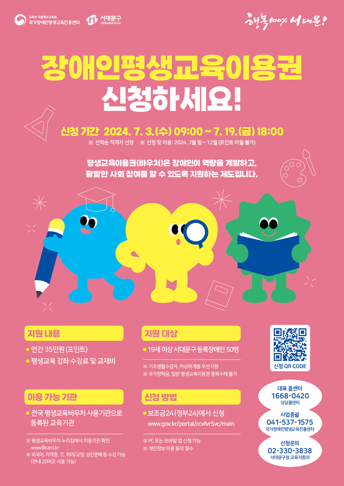 | ▲ 서대문구 장애인평생교육이용권 신청 안내 포스터 (사진=서대문구청 제공) |