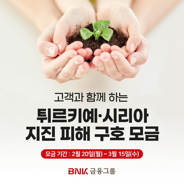 [시민일보 = 여영준 기자] BNK금융그룹은 튀르키예와 시리아 지역에 발생한 지진으로 어려움을 겪고 있는 이재민 지원을 위해 고객과 임직원이 함께 하는 ‘튀르키예 성금 모금’을 추진한다고 20일 밝혔다.