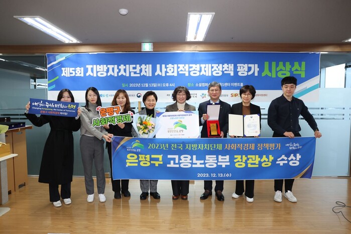[시민일보 = 이대우 기자] 서울 은평구(구청장 김미경)는 ‘2023년 제5회 전국 지방자치단체 사회적경제 정책 평가’에서 1위인 ‘고용노동부 장관상’을 수상했다고 밝혔다.