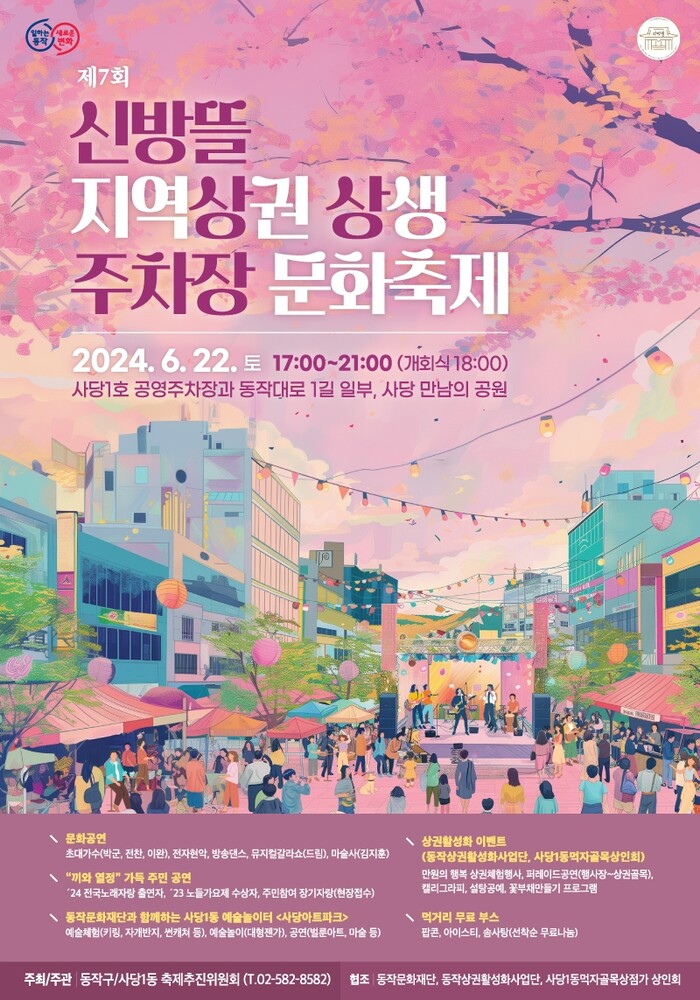 이날 행사는 사당1호 공영주차장(사당동 1042-22)을 중심으로 인근 도로와 사당 만남의 공원 일대에서 열리며, 박일하 구청장을 비롯해 주민, 관광객 등 2000여명이 참석한 가운데 식전공연, 본행사, 부대행사로 나눠 진행된다.
