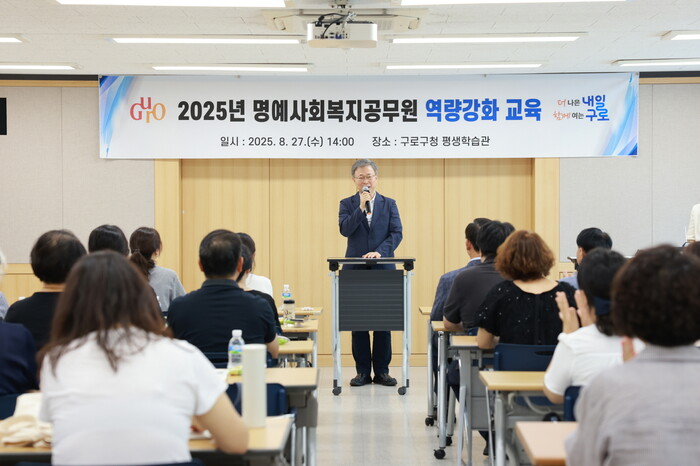 [시민일보 = 박소진 기자] 서울 구로구(구청장 장인홍)가 27일 구청 평생학습관에서 명예사회복지공무원 50여명이 참석한 가운데 현장 대응 역량강화 교육을 실시했다.