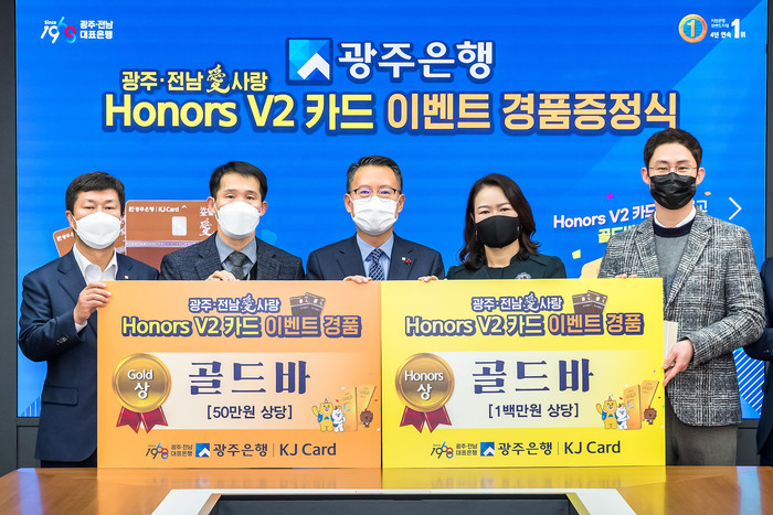 [시민일보 = 이대우 기자] 광주은행(은행장 송종욱)은 ‘광주·전남愛사랑 Honors V2 카드’ 출시기념 이벤트에 당첨된 고객을 본점에 초청해 경품 증정식을 가졌다고 밝혔다.