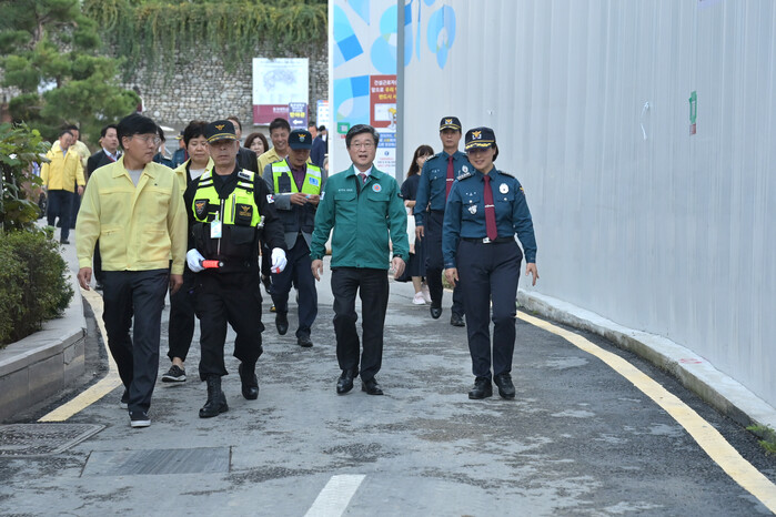 이어서 공동주택 공사 현장을 방문해서 현장 근로자와 시설 안전 관리에 철저를 기하여 줄 것을 당부하고, 여성안심귀갓길과 서애로 등 필동 일대를 함께 순찰하며 안전사고 발생 요인은 없는지, 안심 비상벨은 제대로 작동하는지 등을 꼼꼼하게 점검했다.