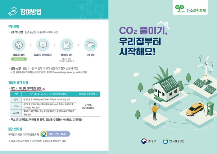 탄소포인트제 가입을 희망하는 가구는 탄소포인트제 홈페이지에 접속해 회원가입을 하거나 함양군청 환경위생과 및 가까운 읍·면행정복지센터를 방문해 연중 신청할 수 있다.