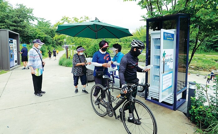이에 따라 올해 힐링냉장고는 오는 17일부터 8월15일까지 주민들의 왕래가 잦은 하천변과 산책로 총 15곳에서 만나볼 수 있다.