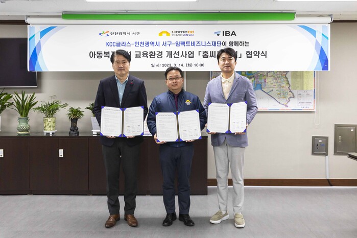 [시민일보 = 홍덕표 기자] 인테리어 전문 브랜드 ‘홈씨씨 인테리어’를 운영하는 KCC글라스가 인천광역시 서구, 사단법인 임팩트비즈니스재단(IBA)과 손잡고 인천 서구 지역 아동들을 위한 교육환경 개선 활동에 나선다고 15일 밝혔다.