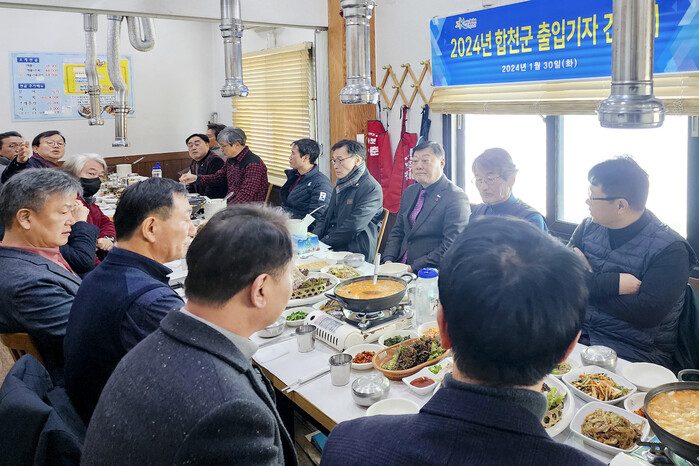 이날 간담회는 언론인들의 군정 발전에 대한 다양한 의견을 듣고, 적극적인 소통을 통해 합천을 널리 홍보하기 위해 마련됐다. 지난해 군정 주요 성과 및 2024년 군정 추진 방향과 주요 사업에 대해 김윤철 군수가 직접 설명하고 이어 기자들의 질의응답 순으로 진행됐다.