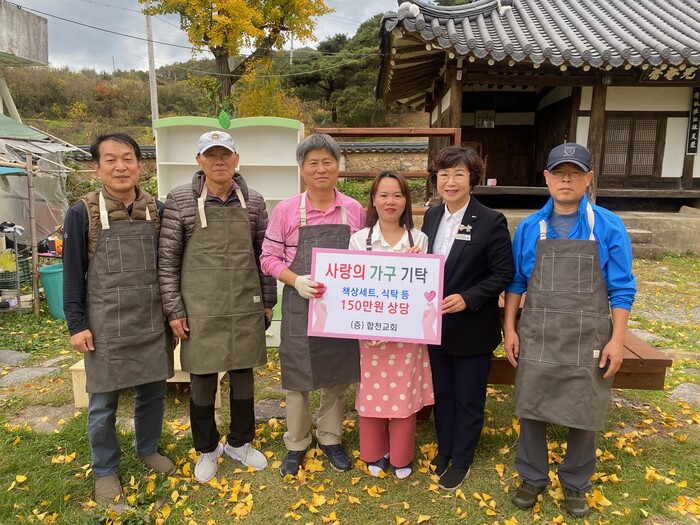 합천교회 장로인 심재수 씨가 읍사무소에서 추천한 대상가정을 방문해 150만원 상당의 책상세트, 식탁, 야외용 테이블 등 대상자가 희망하는 가구 일체를 직접 제작했다.