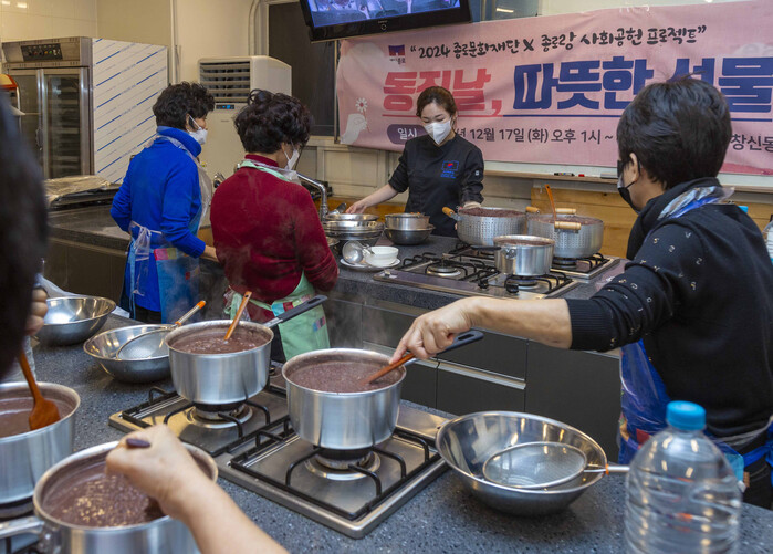 [시민일보 = 이대우 기자] 서울 종로구(구청장 정문헌)가 동지(冬至)를 맞아 최근 쪽방 주민들을 위한 팥줌 나눔 행사를 진행했다.