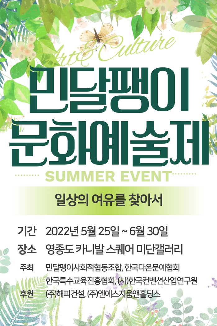 이번 행사는 민달팽이사회적협동조합, 한국다온문예협회, 한국특수교육진흥협회, 그리고 사단법인한국컨벤션산업연구원이 공동주최하고 해피건설과 엔에스지움앤홀딩스가 후원하는 행사로 사회적 거리두기가 해제됨에 따라 푸르른 계절에 온가족이 함께 즐길 수 있는 행사가 될 수 있도록 진행되고 있다.