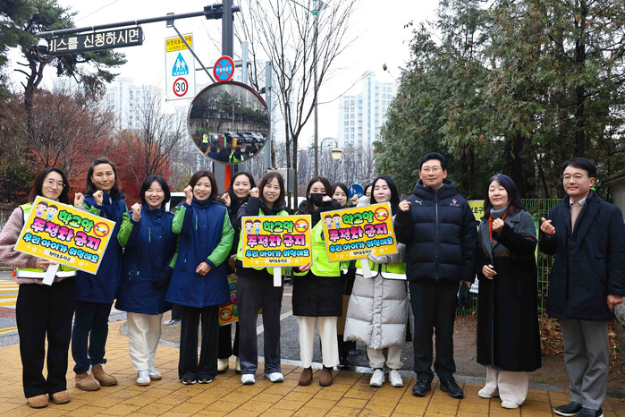 이 시장은 학생들이 안전하게 횡단보도를 건널 수 있도록 돕는 교통지도 봉사에 참여한 후 학교 관계자, 학부모들과 청덕초등학교 학생들이 이용하는 통학로를 살펴보고, 안전한 환경을 조성하기 위한 방안을 논의했다.