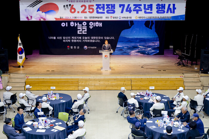 김윤철 합천군수는 “74년 전 오늘 대한민국의 자유민주주의가 위기에 처했을 때 이 자리에 계신 영웅들과 목숨을 바친 호국영령들께서 이 나라를 지켜줬기 때문에 우리는 자유와 평화, 번영을 누리고 있다”며 “참전유공자와 보훈가족 여러분의 희생에 존경과 감사를 드리며 합천의 발전을 위해 최선의 노력을 다하겠다”고 밝혔다.