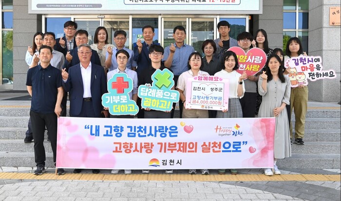 [김천=박병상 기자] 경북 김천시와 성주군이 고향사랑 상호기부를 통해 양 자치단체의 상생발전을 응원하는 행보를 이어가고 있다.