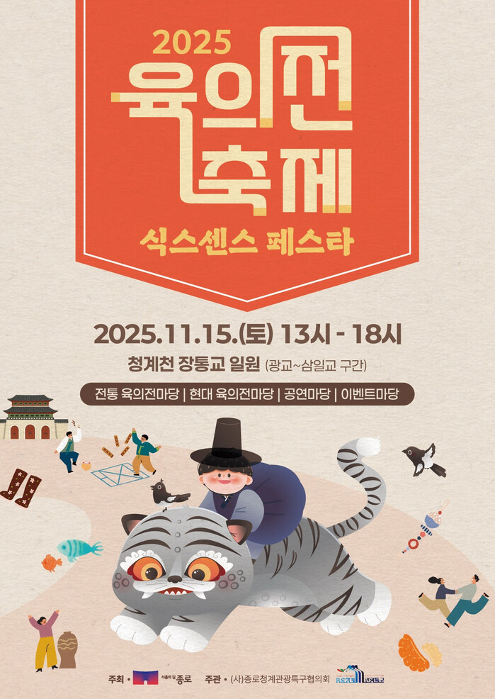 [시민일보 = 이대우 기자] 종로구(구청장 정문헌)가 오는 15일 오후 1~6시 청계천 장통교 일원(관철동 젊음의 거리)에서 ‘2025년 육의전 축제 - 식스센스 페스타(Six Sense Festa)’를 개최한다.