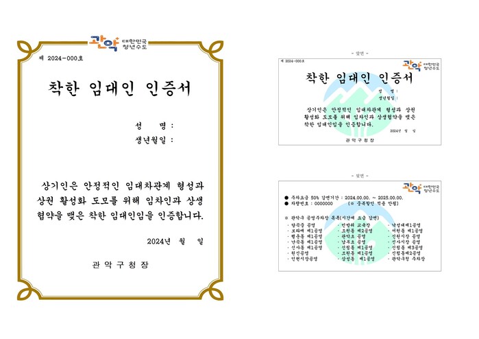 | ▲ 착한 임대인 인증서 이미지 (사진=관악구청 제공) |