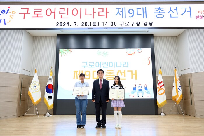 [시민일보 = 이대우 기자] 서울 구로구(구청장 문헌일)가 최근 구청 강당에서 구로어린이나라 제9대 총선거를 실시해 신미림초등학교 6학년 조윤주 학생이 대통령으로, 같은 학교 6학년 정세린 학생이 최고시민으로 선출됐다고 밝혔다.