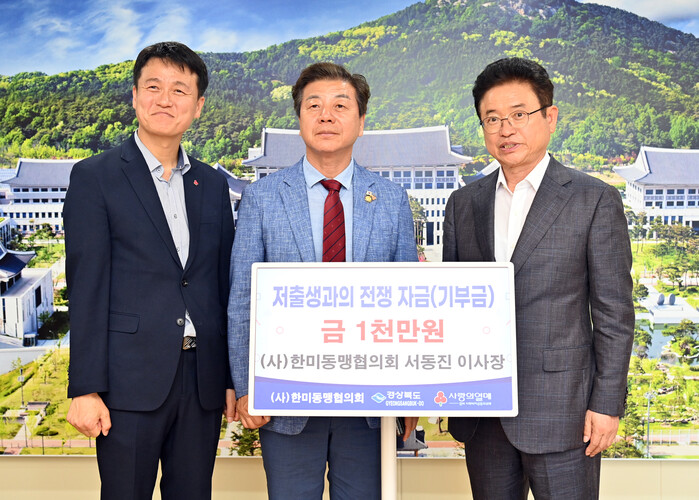 (사)한미동맹협의회는 지난 3일 이철우 지사와 경북도청에서 면담을 가지고 저출생 문제가 심각하다는 데 공감을 하고, 성금 4,000만원을 경상북도사회복지공동모금회를 통해 경북도에 전달했다.